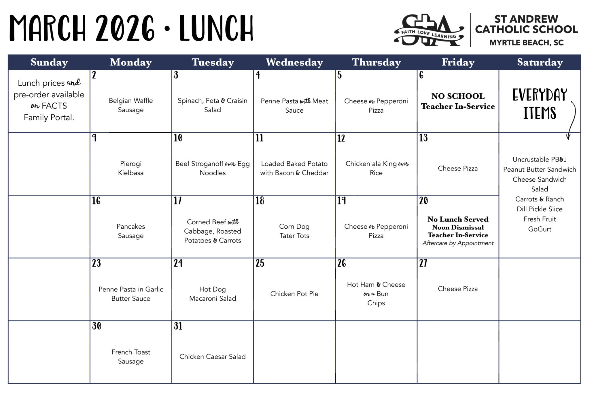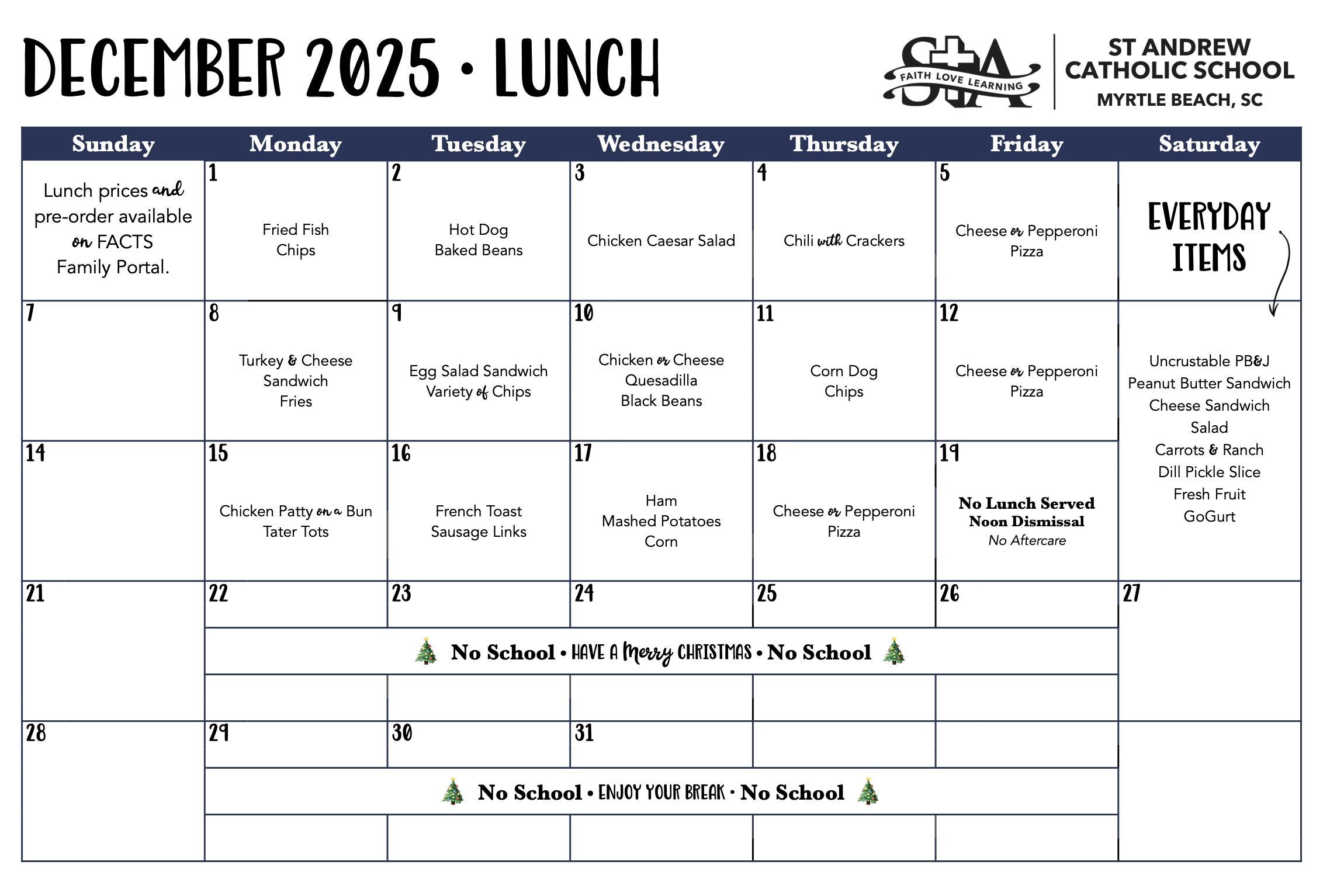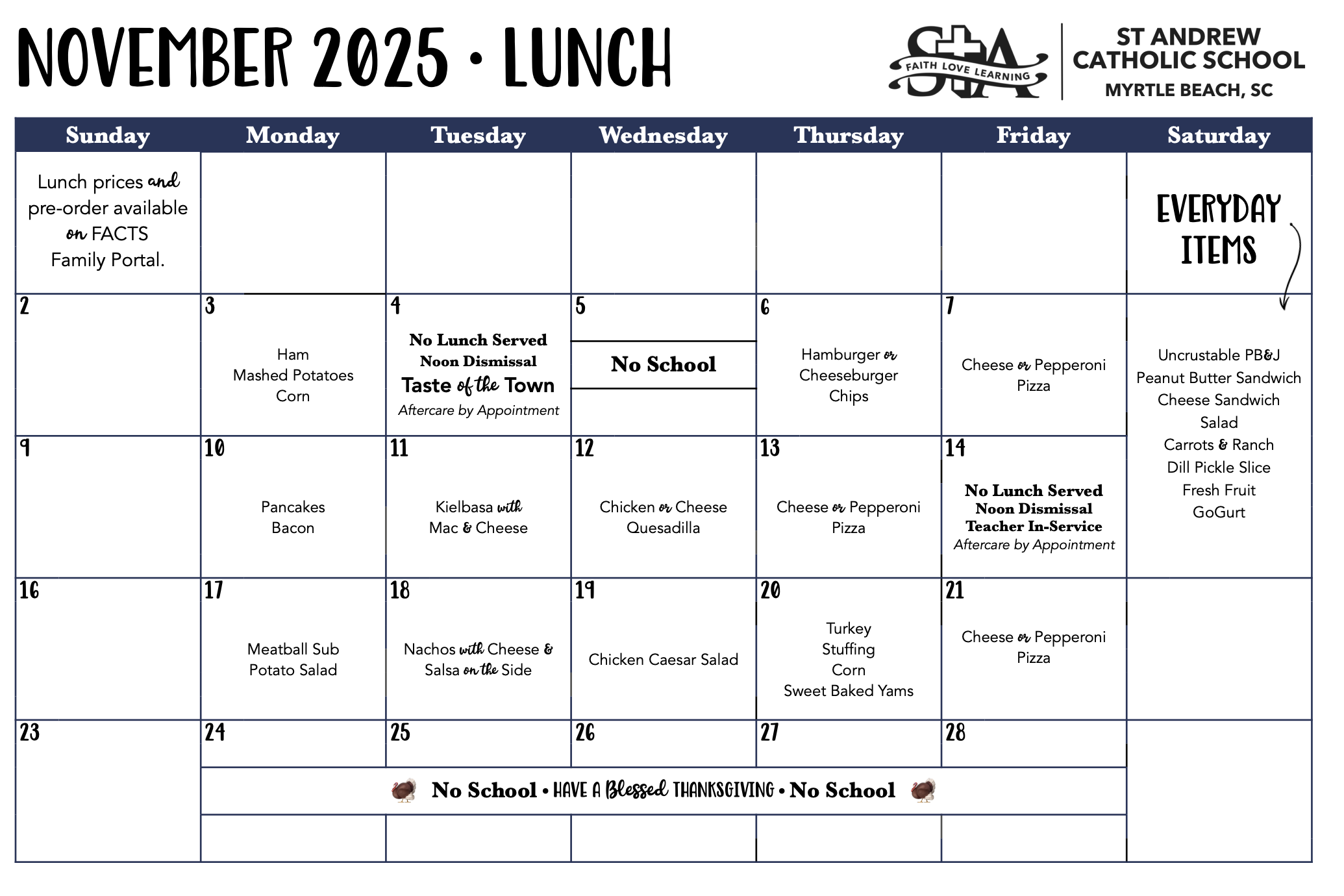 Monthly School Calendar